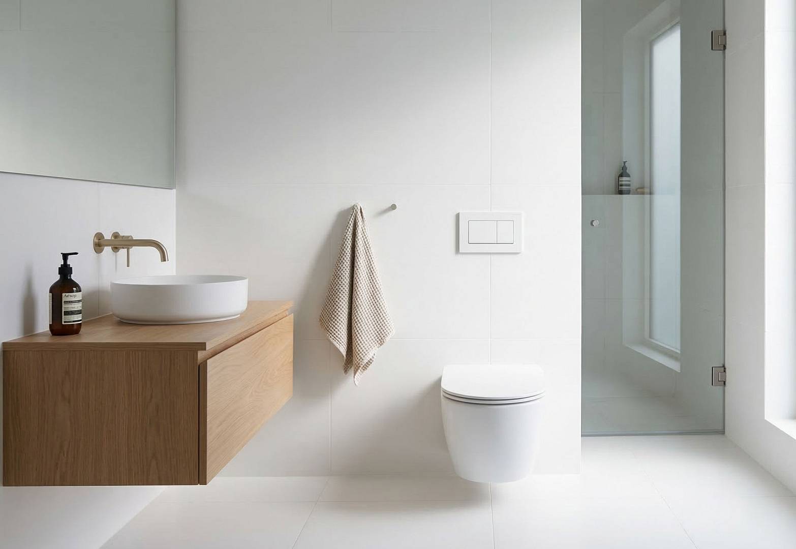 • Mała łazienka (do 4 m²). W małej łazience miska wisząca ma wyraźną przewagę. Optycznie powiększa przestrzeń, a możliwość precyzyjnego ustawienia jej bliżej ściany pozwala zaoszczędzić cenne centymetry. Nowoczesne stelażu mają zaledwie 12 cm głębokości, co przy małej łazience ma realne znaczenie.