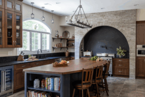 🔸 Dekoracyjne detale to ich znak rozpoznawczy. Frezowane fronty, porcelanowe uchwyty, otwarte półki z kubkami i talerzami, delikatne zdobienia – w tych stylach to nie są zbędne dodatki. To esencja. Każdy detal ma podkreślać domowy charakter kuchni, bez popadania w przesadę.
